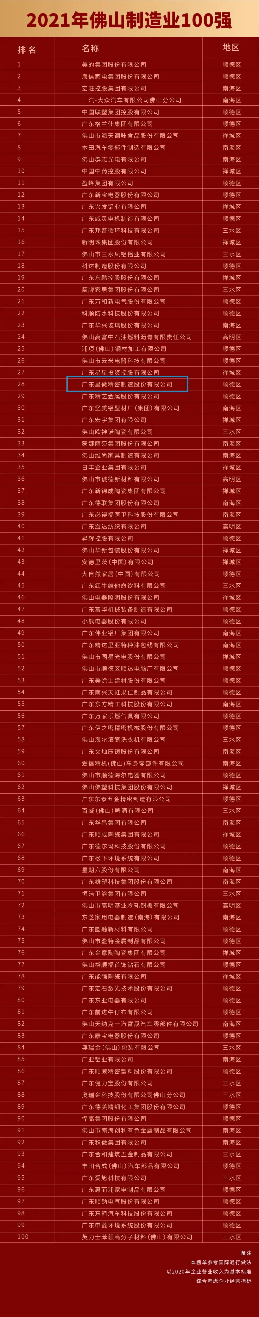排名持續(xù)上升!星徽精密再次榮登“佛山企業(yè)100強”和“佛山制造業(yè)100強”榜單