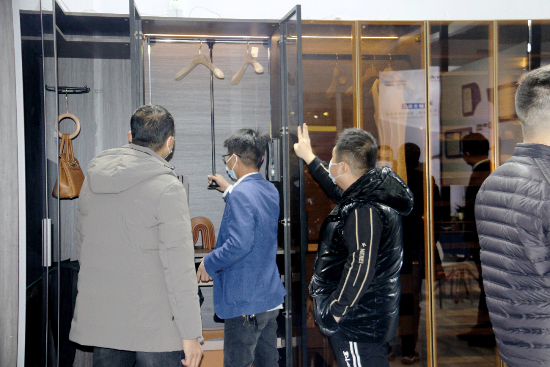 在衣柜功能五金區(qū)域,星徽精密展出了星悅衣柜功能五金系列,沉穩(wěn)高貴的星巴咖與高級棕完美搭配,靈動的設計、精細的做工給展會觀眾帶來了高級感十足的現場體驗。