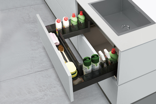 → 儲(chǔ)物:建議儲(chǔ)存各類(lèi)洗潔精、清潔球、抹布等廚房清潔用品。